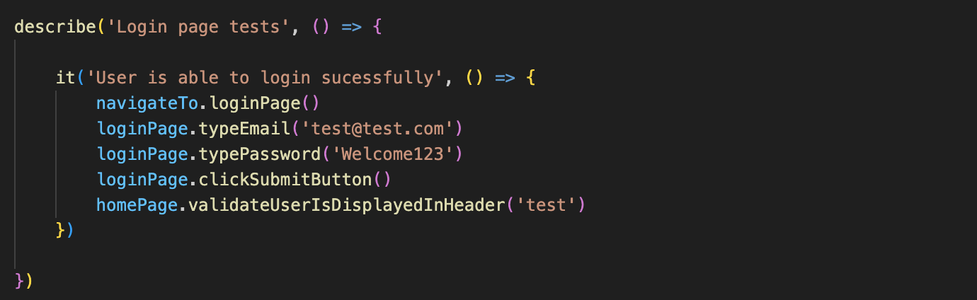 And the last thing is navigation in the code base. When you logically slice your application into page object classes, you can easily navigate between those objects with "dot notation" and code-completion to quickly check which methods are already available and can be reused. Much more comfortable than searching for step definitions.