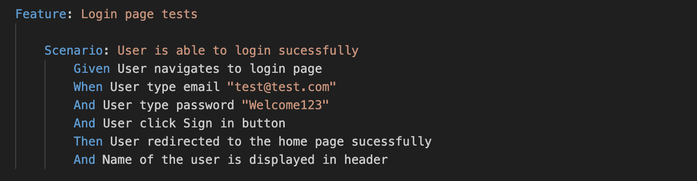 You create a Cucumber feature file and a new Scenario for it, which would look something like this: