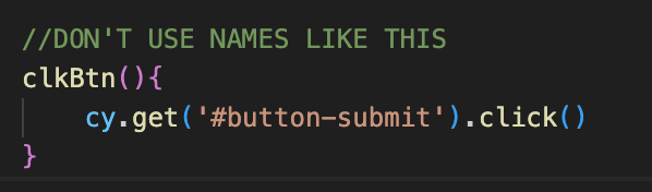Develop a naming convention for the project and follow it! It's important to implement so that you or any other engineer can quickly navigate the project to find reusable components. For example: for all buttons naming is "click"+"textOnButton"+"Button". CamelCase. Or for all forms "fill"+"nameOfTheForm"+"Form". And so on.