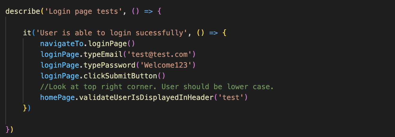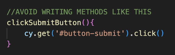 And the last one. Make sure methods hold as much logic as possible! Following P.4 and P.7, design methods are to be responsible for "sections" of application logic and user flow. This also simplifies framework maintenance down the road. For example, if you need to fill out a login form with a username and password, and click submit, don't create 3 methods: one to fill the username, one to fill the password, and one to click the submit button. Create a single method responsible for the login operation.